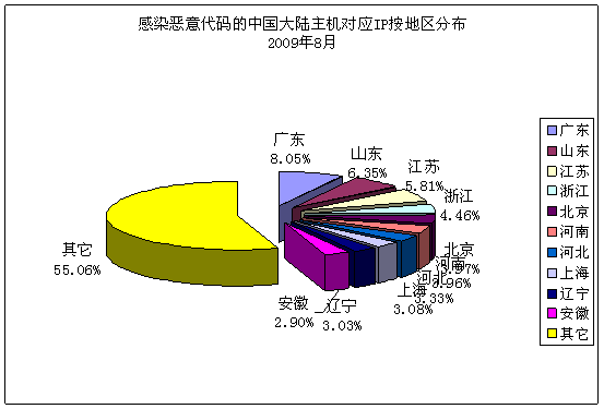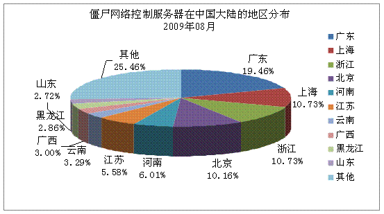 一、河南互聯(lián)網(wǎng)應(yīng)急中心事件處理情況 八月份,我中心共處理2起互聯(lián)網(wǎng)安全事件。國(guó)家互聯(lián)網(wǎng)應(yīng)急中心發(fā)現(xiàn)我省某地市政府網(wǎng)站掛馬。我中心及時(shí)將事件信息通報(bào)相關(guān)電信運(yùn)營(yíng)企業(yè),要求相關(guān)電信企業(yè)及時(shí)協(xié)調(diào)處理,網(wǎng)站現(xiàn)已恢復(fù)正常。 二、基礎(chǔ)電信運(yùn)營(yíng)企業(yè)及網(wǎng)絡(luò)安全企業(yè)上報(bào)情況 八月份,我省各基礎(chǔ)電信運(yùn)營(yíng)企業(yè)及網(wǎng)絡(luò)安全企業(yè)共上報(bào)網(wǎng)絡(luò)安全事件84起,其中河南電信公司上報(bào)11起,河南移動(dòng)公司上報(bào)3起,河南天融信上報(bào)63起,河南山谷上報(bào)1起,世紀(jì)信安上報(bào)6起。相關(guān)電信運(yùn)營(yíng)企業(yè)已及時(shí)處理所上報(bào)安全事件。 三、河南省網(wǎng)絡(luò)安全事件分析 。ㄒ唬┠抉R事件數(shù)據(jù) 2009年8月1日至31日,CNCERT/CC對(duì)當(dāng)前流行的木馬程序的活動(dòng)狀況進(jìn)行了抽樣監(jiān)測(cè),發(fā)現(xiàn)我國(guó)大陸地區(qū)23398個(gè)IP 地址對(duì)應(yīng)的主機(jī)被其他國(guó)家或地區(qū)通過(guò)木馬程序秘密控制,其分布情況如下圖所示,最多的地區(qū)為北京市(24.61%)。其中,我省受控IP地址為826個(gè),排名第10。 ![]() 另外,根據(jù)國(guó)內(nèi)木馬控制服務(wù)器IP地址分布情況看,廣東最多,達(dá)7489個(gè),河南排第5,共有3651個(gè)。 。ǘ┙┦W(wǎng)絡(luò)情況 2009年8月1日至31日,CNCERT/CC對(duì)僵尸網(wǎng)絡(luò)的活動(dòng)狀況進(jìn)行了抽樣監(jiān)測(cè),發(fā)現(xiàn)國(guó)內(nèi)699個(gè)IP地址對(duì)應(yīng)的主機(jī)被利用作為僵尸網(wǎng)絡(luò)控制服務(wù)器,僵尸網(wǎng)絡(luò)主機(jī)數(shù)目有117852個(gè)。其中,我省僵尸網(wǎng)絡(luò)控制服務(wù)器數(shù)量為42個(gè),僵尸網(wǎng)絡(luò)所感染的主機(jī)數(shù)量為6476個(gè)。 1、僵尸網(wǎng)絡(luò)控制服務(wù)器數(shù)量按地區(qū)排名 下圖是根據(jù)僵尸網(wǎng)絡(luò)控制服務(wù)器的數(shù)量,按地區(qū)繪制的Top10分布圖。我省8月份僵尸網(wǎng)絡(luò)控制服務(wù)器數(shù)量在全國(guó)排第5位。 ![]() 2、僵尸網(wǎng)絡(luò)所感染主機(jī)數(shù)量按地區(qū)排名 下圖是根據(jù)僵尸網(wǎng)絡(luò)所感染主機(jī)的數(shù)量,按地區(qū)繪制的Top10分布圖。從圖中可以看到,我省僵尸網(wǎng)絡(luò)所感染主機(jī)數(shù)量在全國(guó)排第8位。 ![]() 3、僵尸網(wǎng)絡(luò)控制服務(wù)器使用的控制端口分布 下圖是僵尸網(wǎng)絡(luò)控制服務(wù)器使用的控制端口分布圖,從圖中可以看到,56.38%的僵尸網(wǎng)絡(luò)控制服務(wù)器通過(guò)6667端口對(duì)目標(biāo)計(jì)算機(jī)進(jìn)行控制。 ![]() (三)網(wǎng)頁(yè)篡改情況 2009年8月1日至31日,我國(guó)大陸地區(qū)被篡改網(wǎng)站的數(shù)量為3693個(gè),其中,我省被篡改網(wǎng)站數(shù)量為402個(gè),排名全國(guó)第2。 ![]() 網(wǎng)頁(yè)篡改事件中,排名前三位的攻擊者的名稱(chēng)分別是:用幸福觸摸憂傷@W.S.H,攻擊511次;雨夜孤魂,攻擊200次;Killer,攻擊74次。 。ㄋ模⿶阂獯a捕獲情況 1、惡意代碼捕獲次數(shù)排名 下表是通過(guò)蜜網(wǎng)捕獲的惡意代碼樣本及其變種數(shù)量前10名: